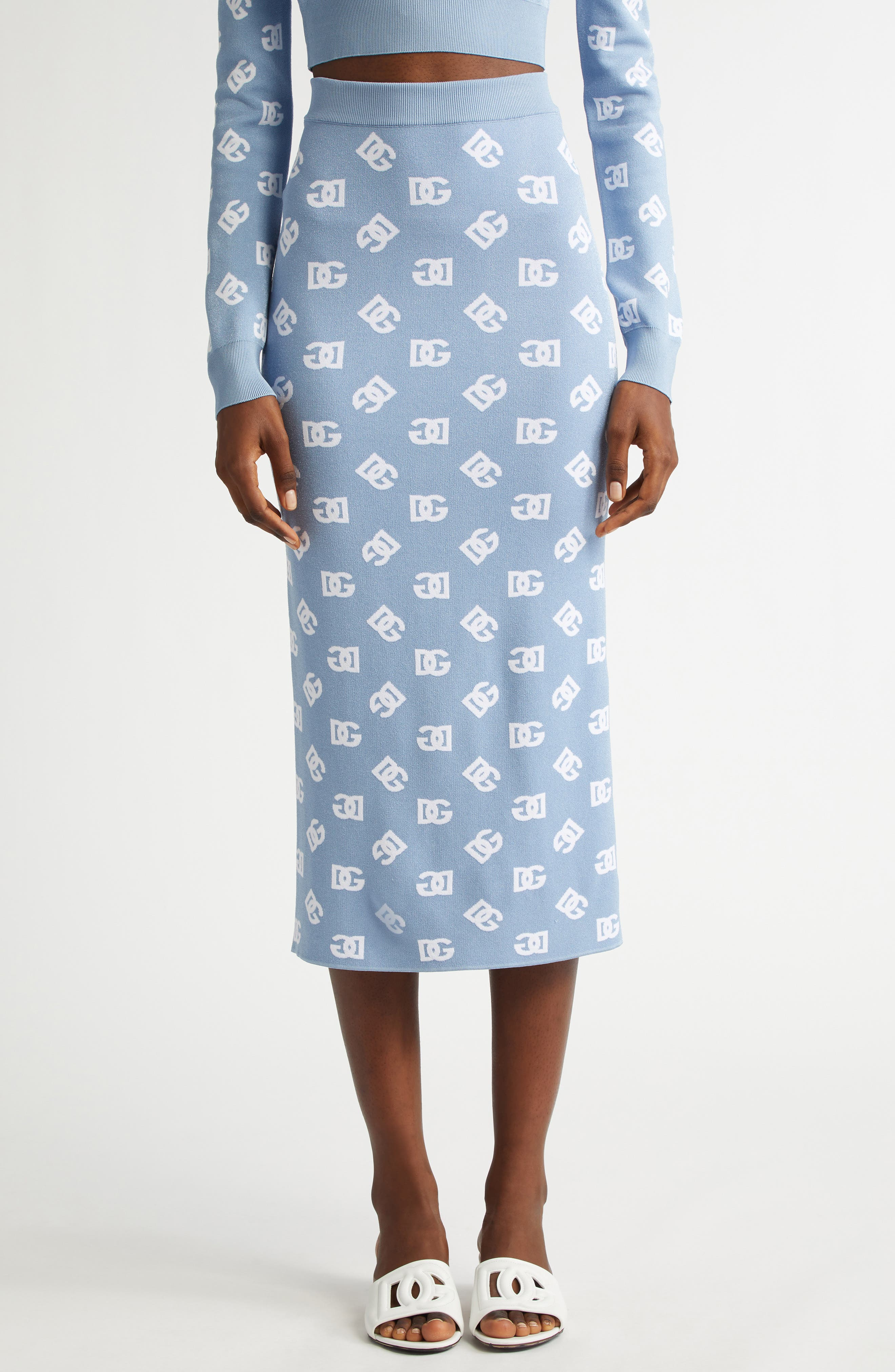 Dolce&Gabbana Logo Jacquard Pencil Skirt in B0143 Celeste Chiaro at Nordstrom
