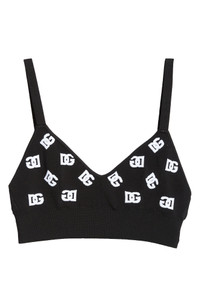 Dolce&Gabbana Logo Monogram Bralette Crop Top in Nero/Bianco at Nordstrom