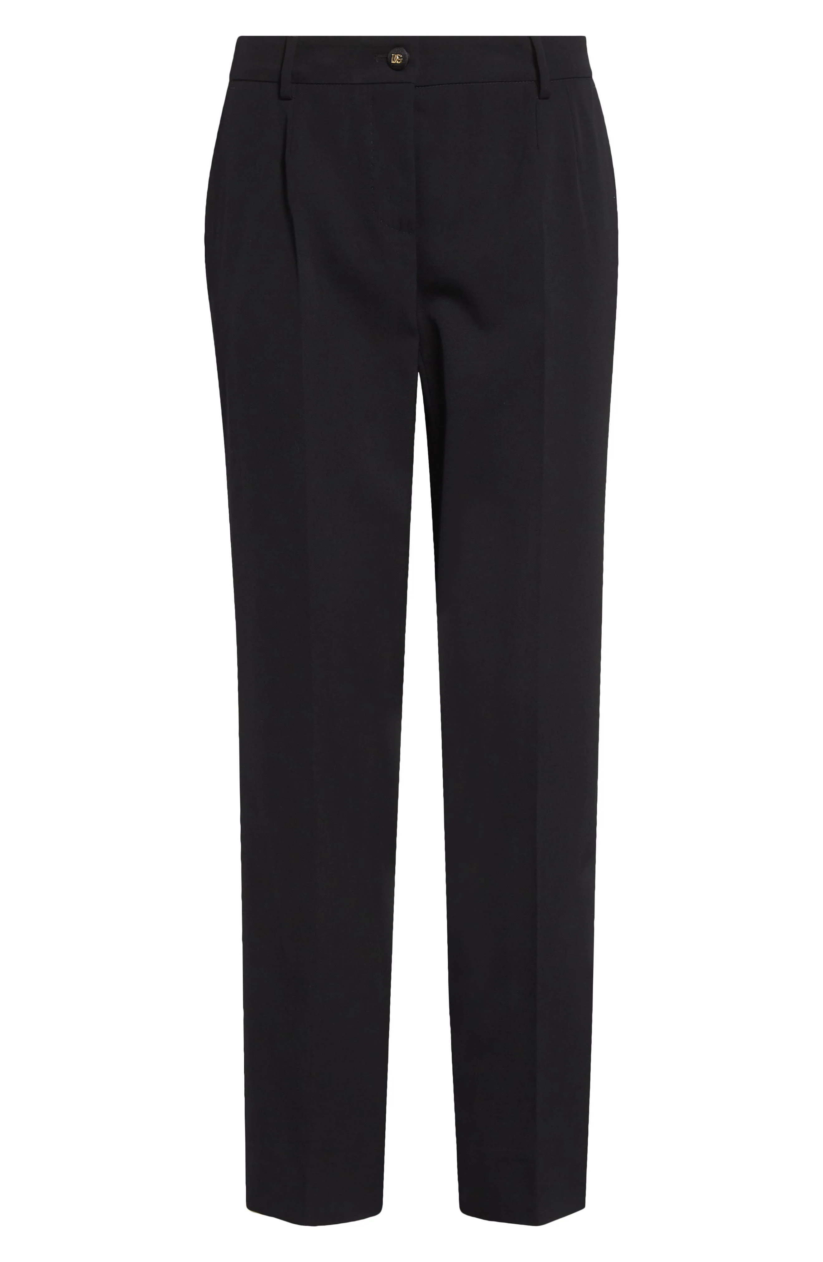 Logo-embossed buttons put D&G's unmistakable stamp on these stretch-wool ankle pants from the Essential Collection that breathes new life into closet-staple pieces. Zip fly with button closure Front slant pockets; back welt pockets 97% virgin wool, 3% spandex Dry clean Made in Italy Designer Clothing