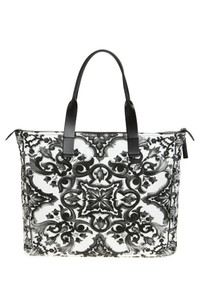 Majolica-print calfskin shopping bag