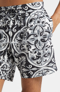 Dolce&Gabbana Majolica Print Swim Trunks in Hy5Dq Maiolica 2L Nero at Nordstrom