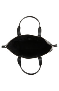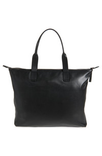 Stamped logo lettering brings understated branding to this calfskin-leather shopper topped with handles short enough for hand carry but long enough to slip over the shoulder. Top zip closure Top carry handles Interior snap-tab wall pocket; two wall pockets Leather Made in Italy