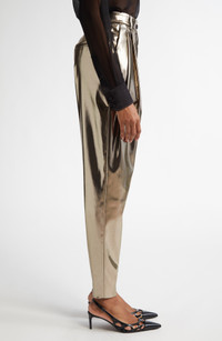 Dolce&Gabbana's iconic drama informs the golden shine of heavily pleated pants designed with a high waist and streamlined zip cuffs. Zip fly with button closure Front slant pockets Zip cuffs 75% acetate, 22% nylon, 3% spandex Dry clean Made in Italy Designer Clothing