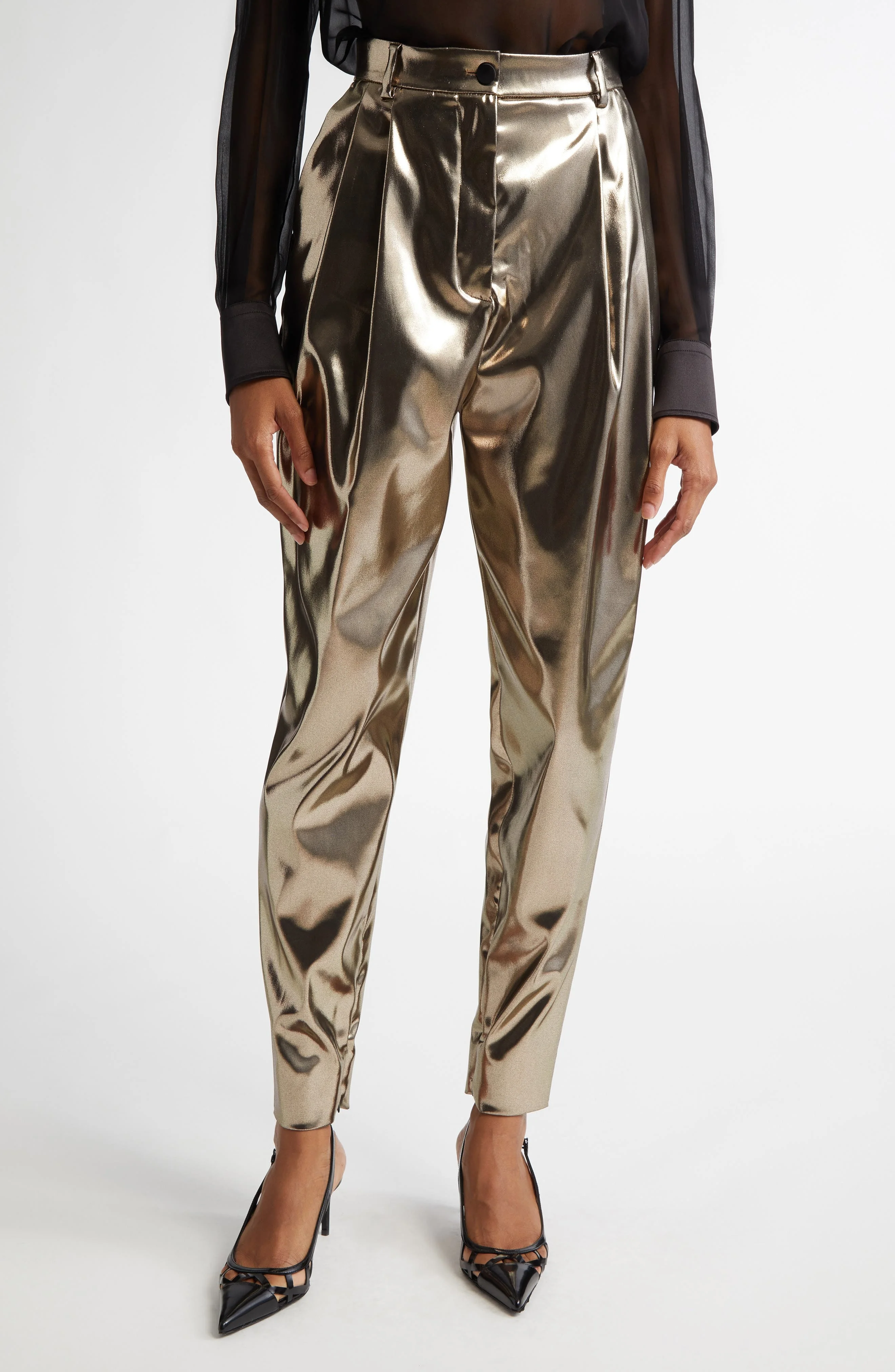Dolce&Gabbana Metallic Pleated Ankle Pants in S0985 Oro Antico at Nordstrom