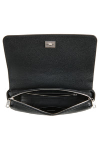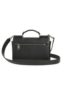 Signature understated elegance and modern aesthetics merge on this structured handbag crafted in Italy from grainy calfskin leather. A rolled handle and removable shoulder strap allow for carrying versatility, while logo-engraved hardware authenticates the pristine style. 10"W x 6"H x 2 1/2"D 2" handle drop; 22" shoulder strap drop Magnetic-snap flap with interior zip closure Top carry handle; removable, adjustable crossbody strap Exterior zip pocket Interior zip pocket Leather lining Leather Made in Italy Designer Handbags