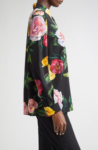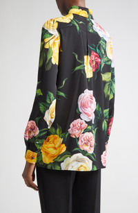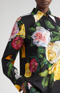 Dolce&Gabbana Peony & Rose Floral Charmeuse Button-Up Shirt in Peonie/Rose F.nero at Nordstrom