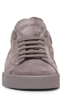A perforated D&G logo punctuates the side of this supple suede sneaker with comfort assured by the cushioned footbed and easy, slouchy silhouette. Lace-up style Cushioned EVA footbed Leather upper and lining/rubber sole Made in Italy Designer Shoes