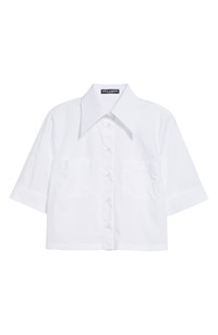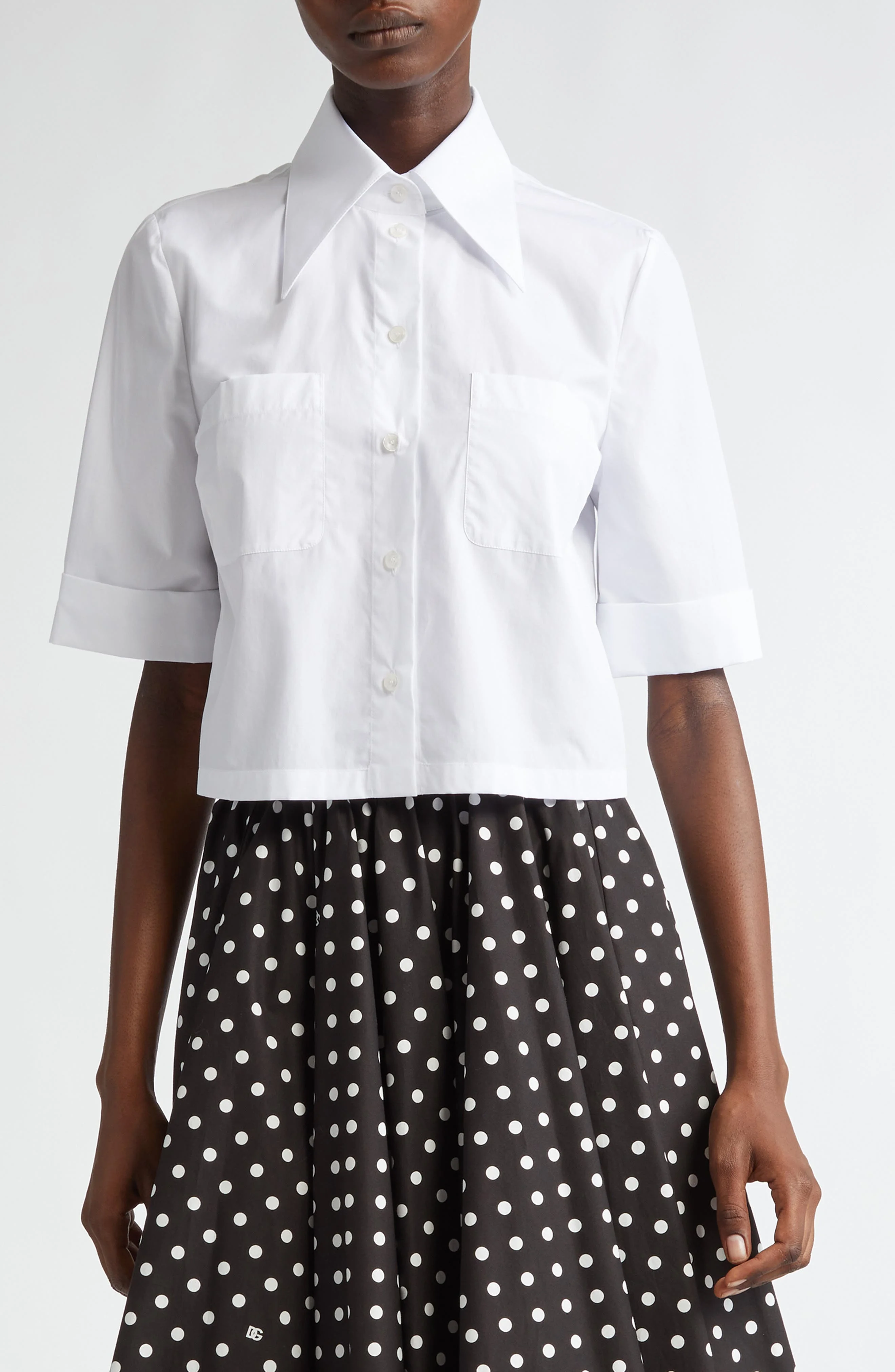 Dolce&Gabbana Point Collar Cotton Crop Shirt in W0800 Bianco Ottico at Nordstrom