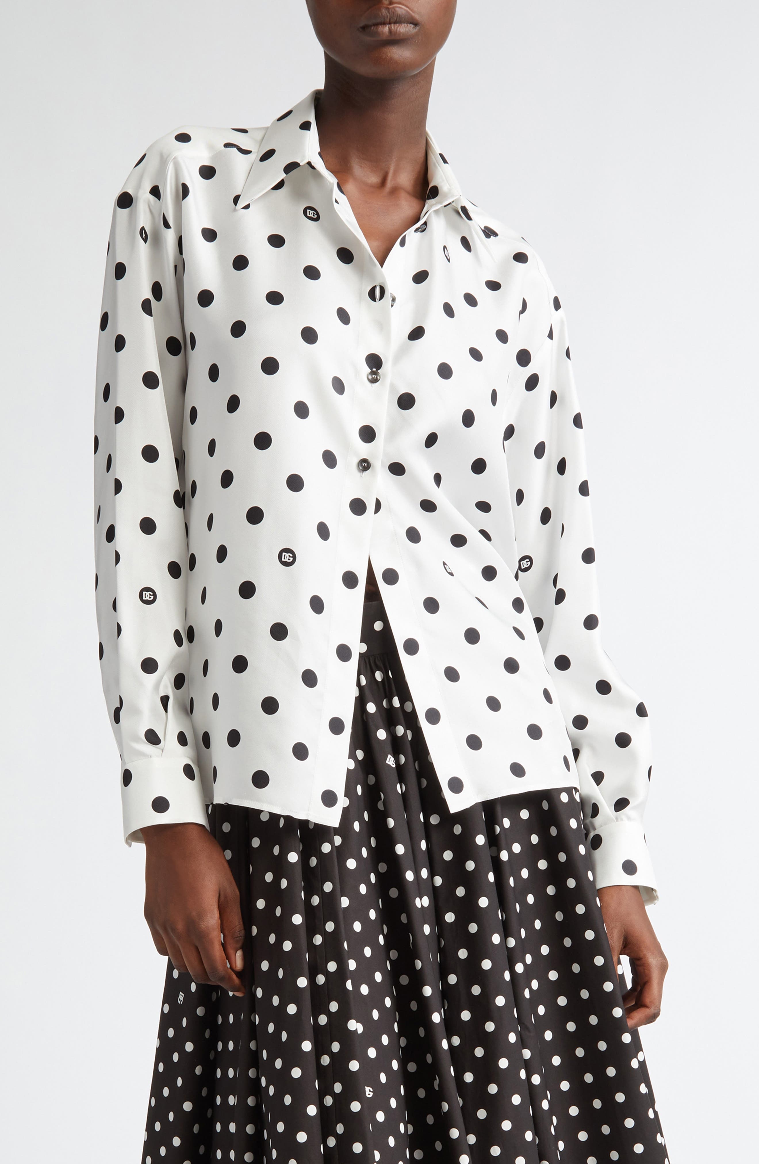 Dolce&Gabbana Polka Dot Silk Button-Up Shirt in Bianco at Nordstrom