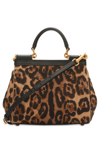Signature Dolce&Gabbana understated elegance and modern aesthetics merge in this structured handbag crafted from leopard jacquard. Magnetic-snap flap closure Top carry handle; removable, adjustable shoulder strap Interior wall pockets Structured silhouette with flat base and protective metal feet Lined Textile with leather trim Made in Italy Designer Handbags