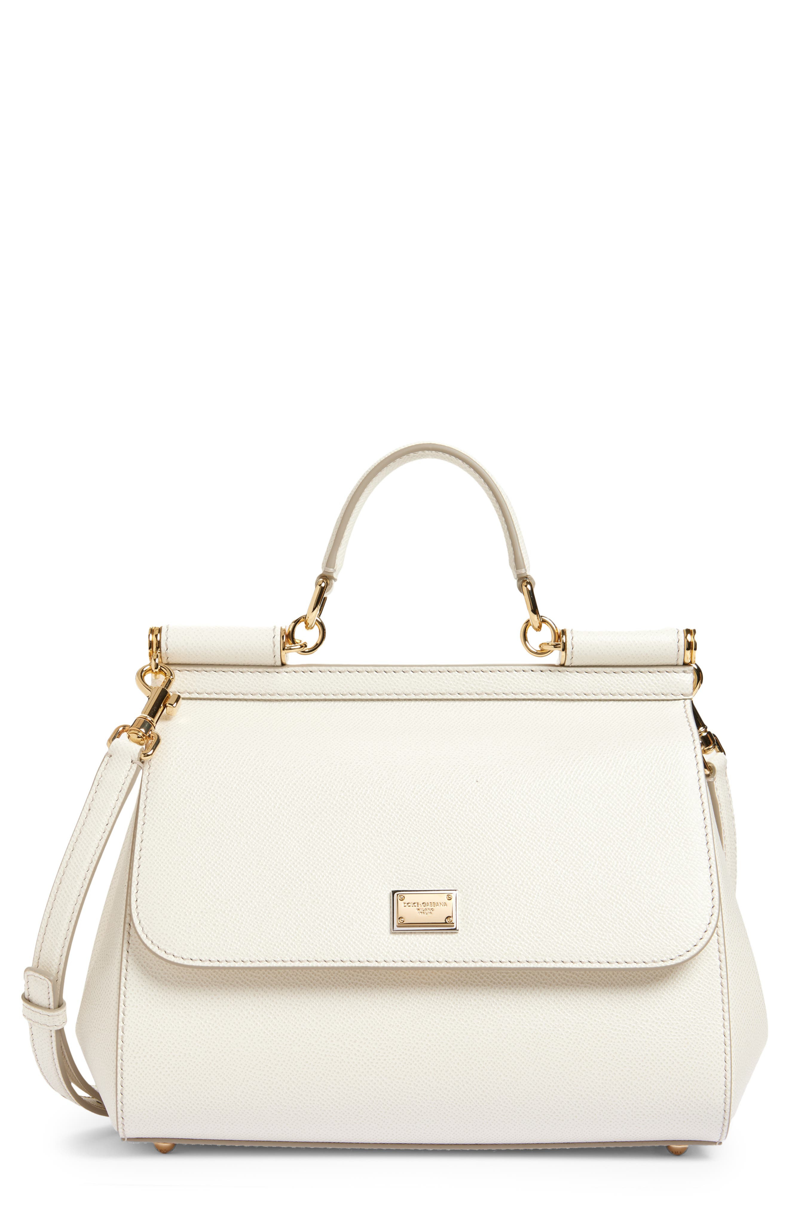 Dolce&Gabbana Sicily Leather Top Handle Bag in 80001 White at Nordstrom