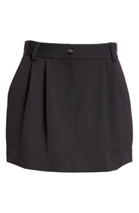 This runway-featured gabardine skirt takes inspiration from the sartorial elegance of pleated tuxedo pants and mingles it with the seductive lines of the leg you can only get from a mini length. Zip fly with button closure Front slant pockets; back button-welt pockets Unlined 90% virgin wool, 8% silk, 2% polyester Dry clean Made in Italy Designer Clothing