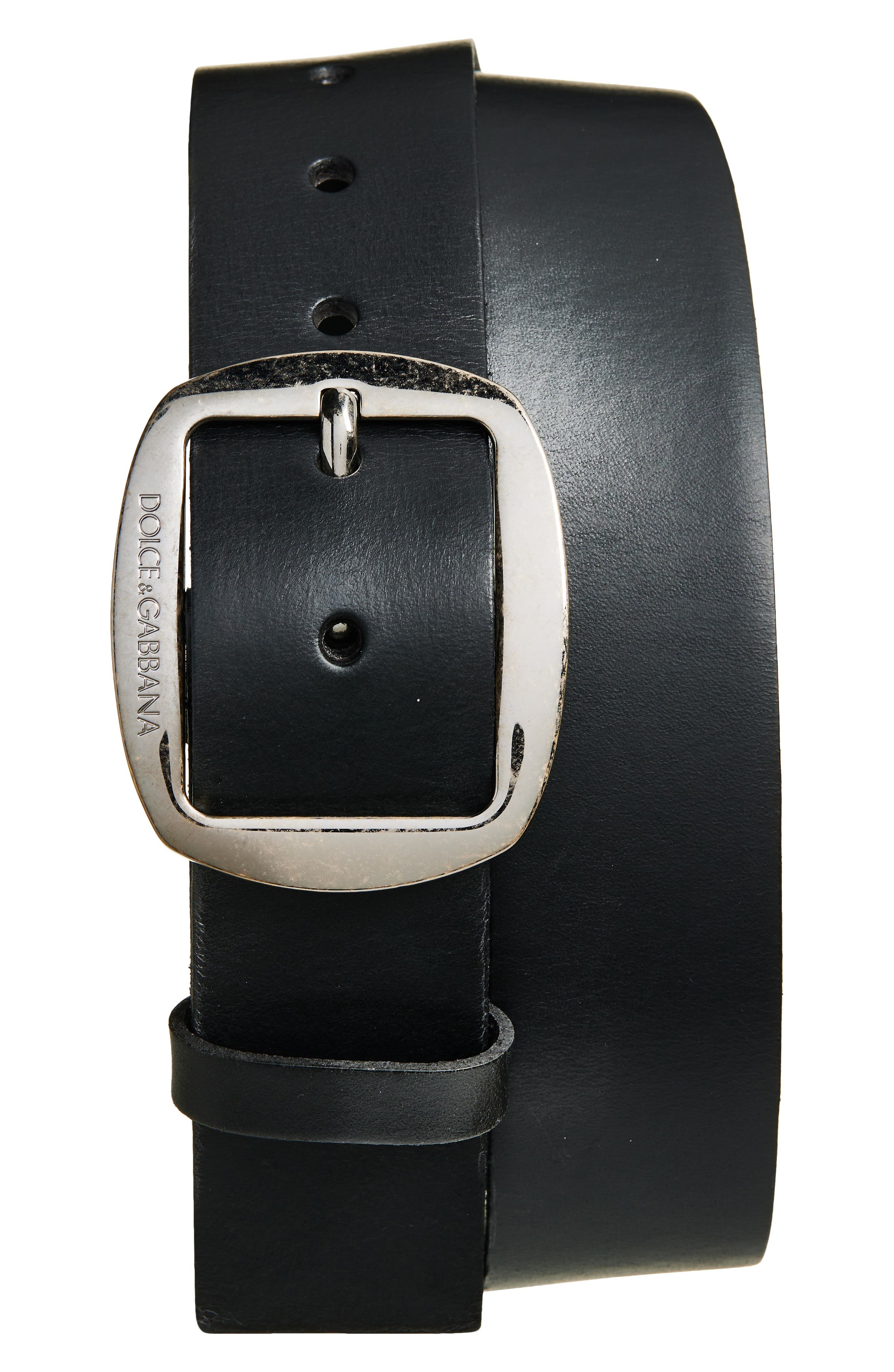 Dolce&Gabbana Washed Leather Belt in 80999 Nero at Nordstrom