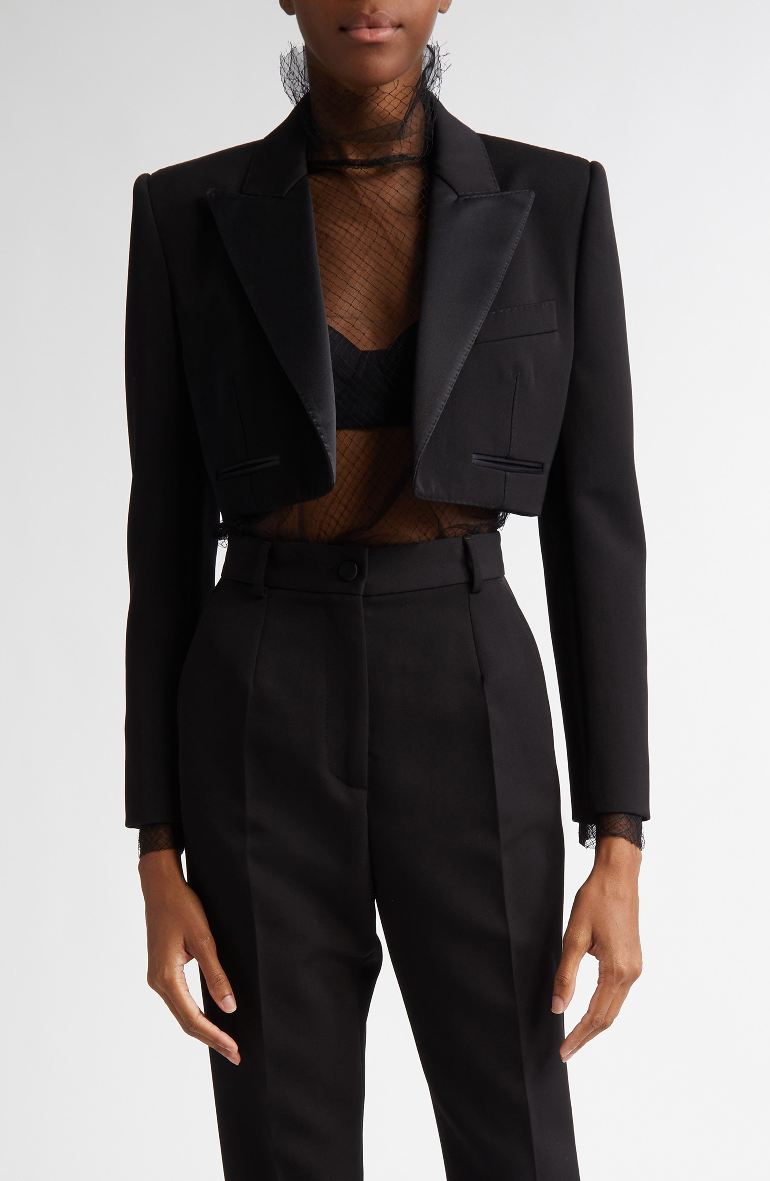 Dolce&Gabbana Wool & Silk Blend Crop Blazer in N0000 Nero at Nordstrom