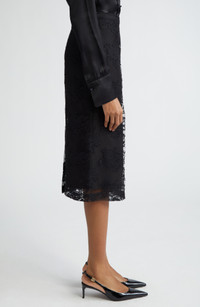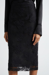 Sheer floral lace romances a classic pencil skirt crafted in Italy. Hidden back-zip closure Lined 76% cotton, 24% polyester Dry clean Made in Italy Designer Clothing