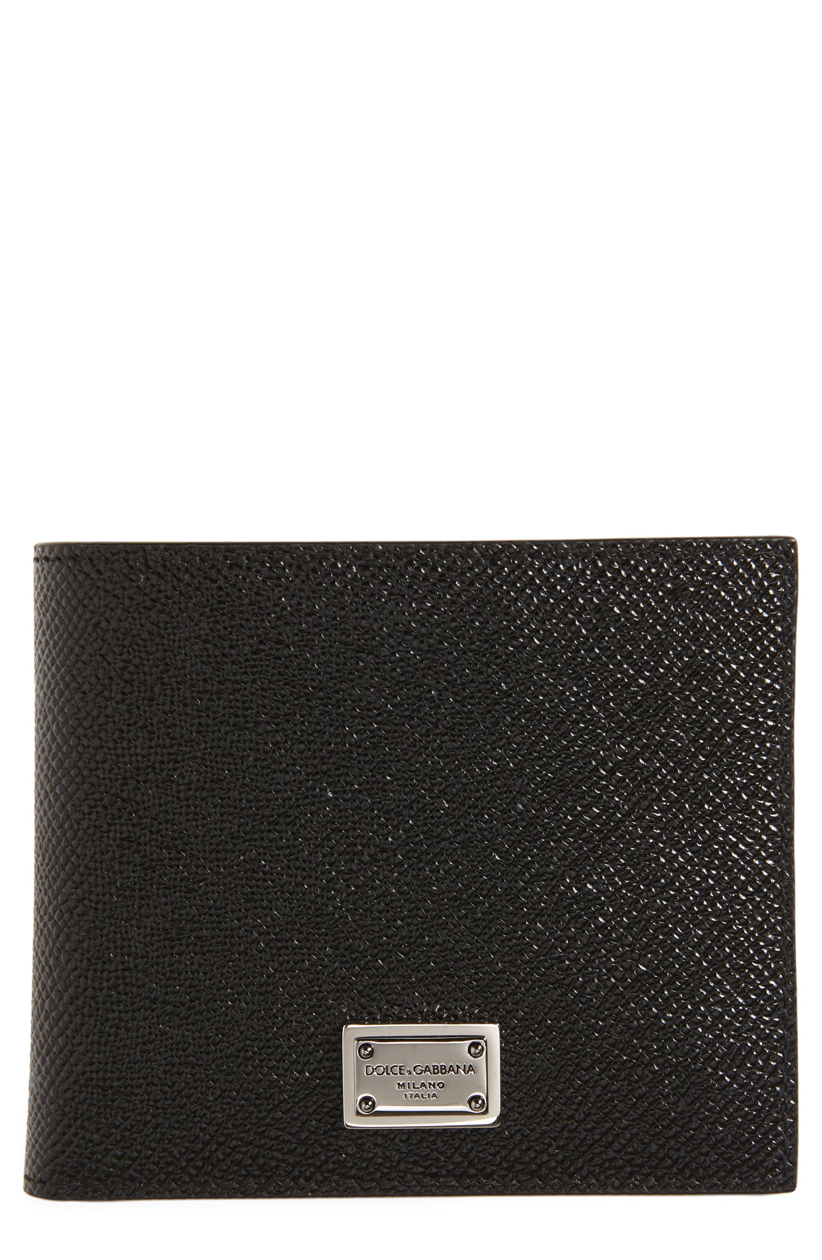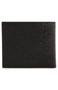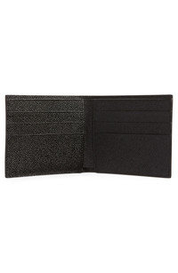 An engraved logo plate brands this textured calfskin wallet with ample slots and pockets to keep financial essentials organized. 4.25"W x 3.75"H x 0.5"D Interior currency pocket; six card slots Leather Made in Italy