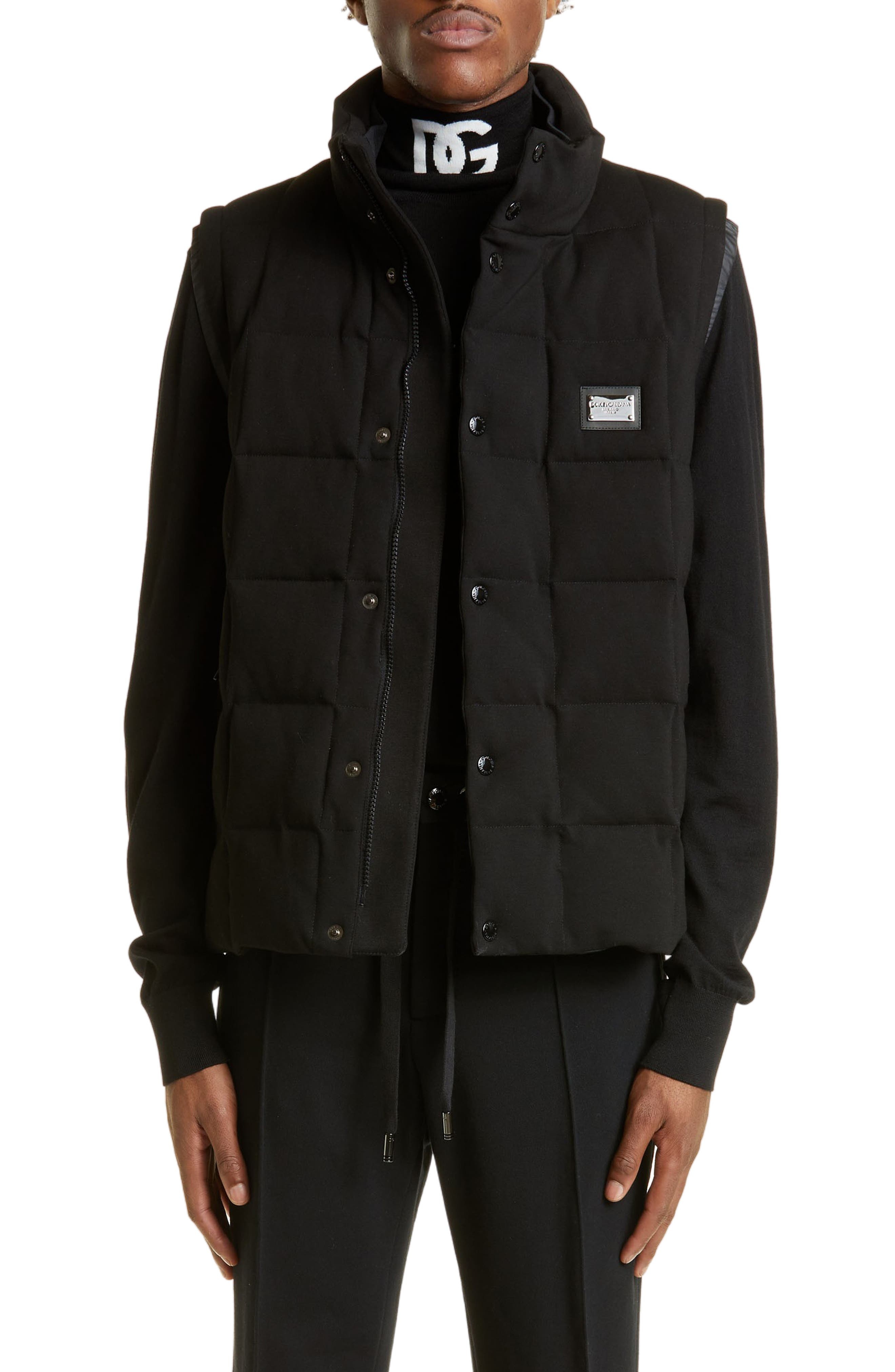 A sleek metal logo plaque balances the exceptional warmth and softness of this Italian-crafted vest designed with puffed channel quilting. 26" length Front snap closure Stand collar Lined, with polyester fill 69% rayon, 25% nylon, 6% spandex Machine wash, line dry Made in Italy Men's Designer Clothing