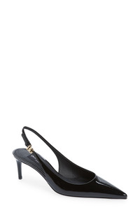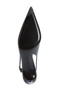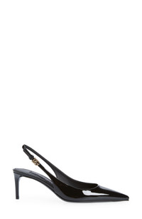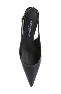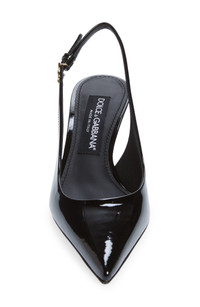 A DG-logo buckle gleams at the slingback strap on this pointy-toe pump set on a straight heel and crafted in Italy of glossy calfskin leather. 2 1/4" (60mm) heel Adjustable slingback strap with buckle closure Leather upper, lining and sole Made in Italy Designer Shoes