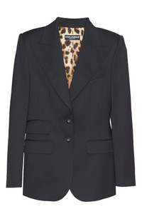 A leopard-print lining adds a secret splash of color to a smartly topstitched blazer fashioned from stretch-enhanced wool. 30" length (size 46IT) Front button closure Peaked lapels Front flap pockets Lined 97% wool, 3% elastane Dry clean Made in Italy Women's Designer Clothing