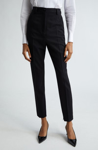 Inspired by the rich imagery of 1960s Sicily, these wool-blend gabardine trousers boast a clean, tailored silhouette and tapered legs cropped at the ankle. Zip fly with button closure Front slant pockets; back welt pockets 95% virgin wool, 3% silk, 2% polyester Dry clean Made in Italy Designer Clothing