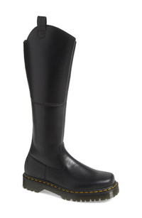 Bring instant edge to any look with this knee-high, square-toe boot crafted from Orleans leather featuring a lightly textured, waxy finish with an aged appearance that develops with wear. A scripted AirWair heel loop at the asymmetric topline, Goodyear-welted construction and a tough air-cushioned Bex Squared outsole deliver the brand's well-known durability. Side zip closure Leather and textile upper/textile and synthetic lining/synthetic sole Imported