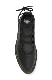The ideal balance of balletic grace and Docs' ballistic designs, this pointy-toe flat features an adjustable lace-up fit that ties above the ankle and is yellow welt stitched to a signature grooved, chunky sole. Wraparound ankle strap with tie closure Leather upper/textile lining/PVC sole Imported