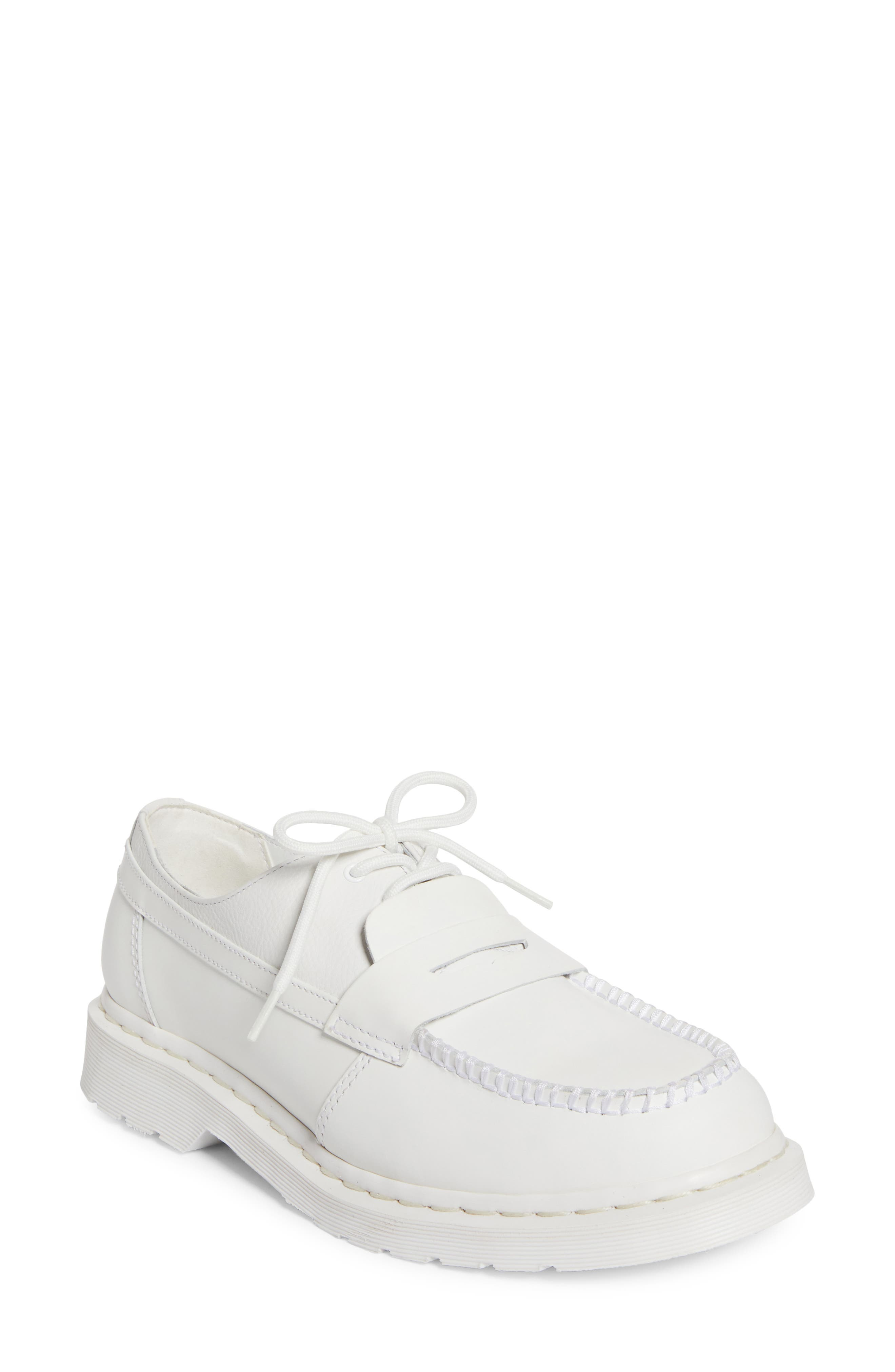 The French design house known for their deconstructive aesthetic pairs with the legendary footwear company to create this monochromatic shoe that's a mash-up of a derby and a penny loafer. Iconic house codes from both houses offer dual branding, while a bouncy AirWair textured sole offers a comfortable ride step after step. Lace-up style Leather upper/leather and textile lining/synthetic sole Imported Designer Shoes