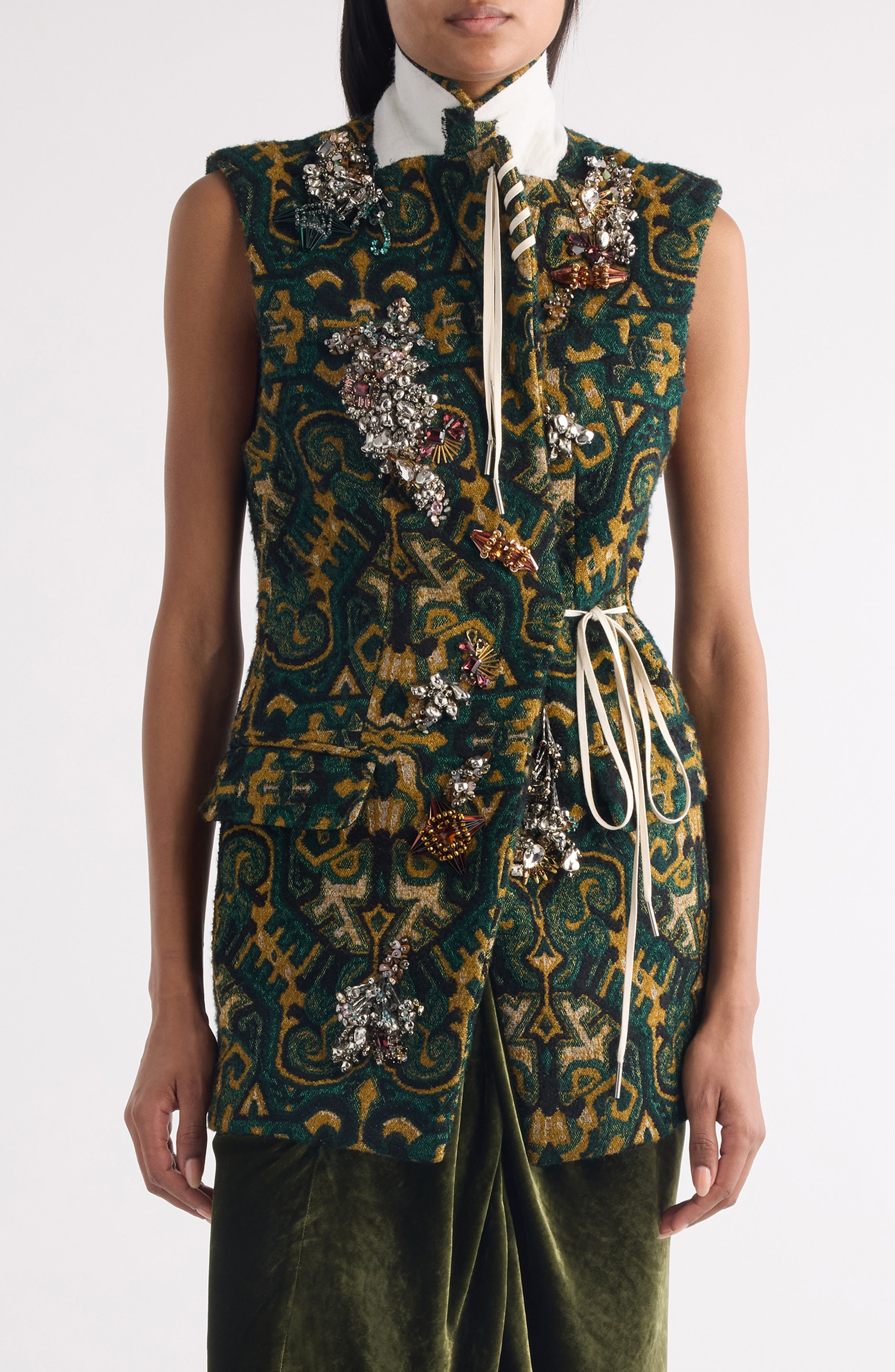 Dries Van Noten Bimbila Embellished Sleeveless Blazer in Bottle at Nordstrom