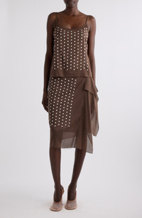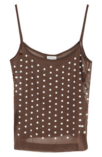 The iconoclastic Belgian designer's playful pattern/texture fusion lives on in this partially polka dot camisole cut from lightweight, semisheer silk with a hint of stretch. Scoop neck Semisheer 94% silk, 6% elastane Dry clean Imported Designer Clothing