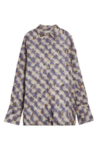 Van Noten successor Julian Klausner continues the iconoclastic Belgian designer's eclectic color/print/texture fusion with this silk-rich shirt in a hazy plaid decorated with scores of sparkling crystals, evoking the grandeur and glamour of the fall '25 runway show. Front button closure Point collar Long sleeves with French cuffs Dropped shoulders 33% silk, 33% cotton, 32% polyester, 2% polyamide Dry clean Imported Designer Clothing