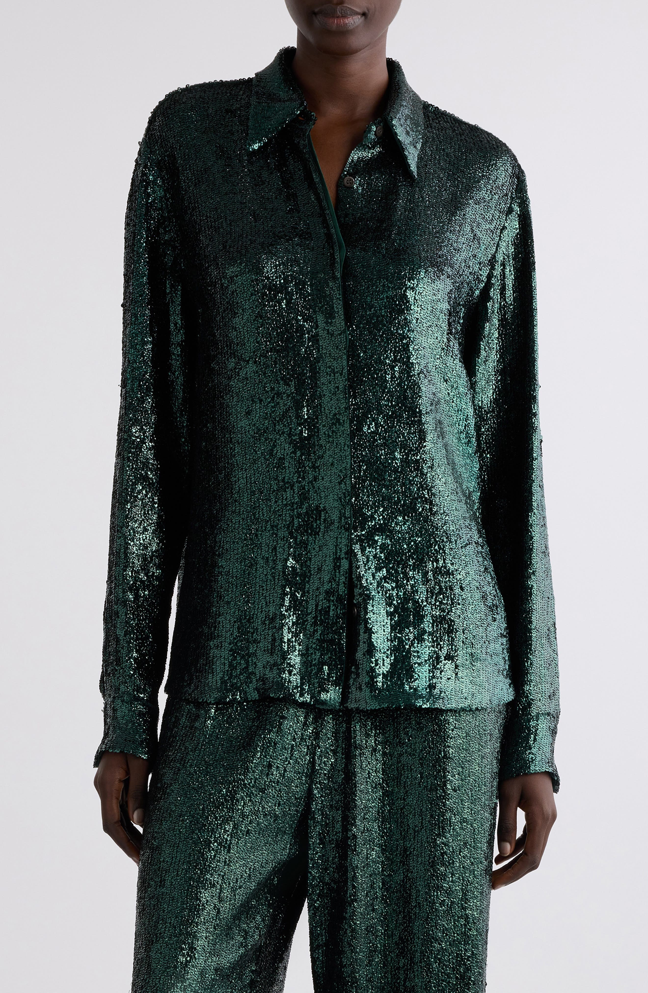 Dries Van Noten Chowy Sequin Button-Up Shirt in Bottle at Nordstrom
