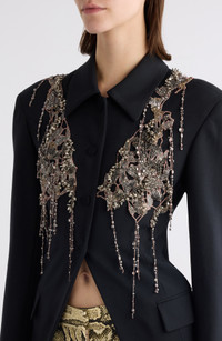 The iconoclastic Belgian designer's legacy of eclectic embellishment lives on this runway-showcased wool-mohair jacket glitzed up with a glistening mix of sequins, studs and beaded chains. Front button closure Spread collar Front flap pockets Lined 83% wool, 17% mohair Dry clean Imported Designer Clothing