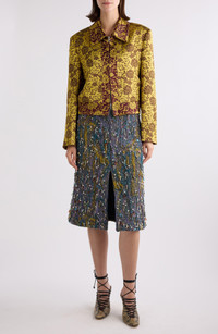 Dries Van Noten Floral Jacquard Crop Satin Jacket in Ocra at Nordstrom
