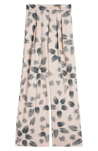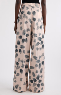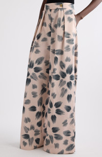 The iconoclastic Belgian designer's exaggerated tailoring lives on in these pleated extrawide-leg pants cut from silky satin patterned in abstract flower petals. Zip fly with button-tab closure Front slant pockets 55% viscose, 45% cotton Dry clean Imported Designer Clothing