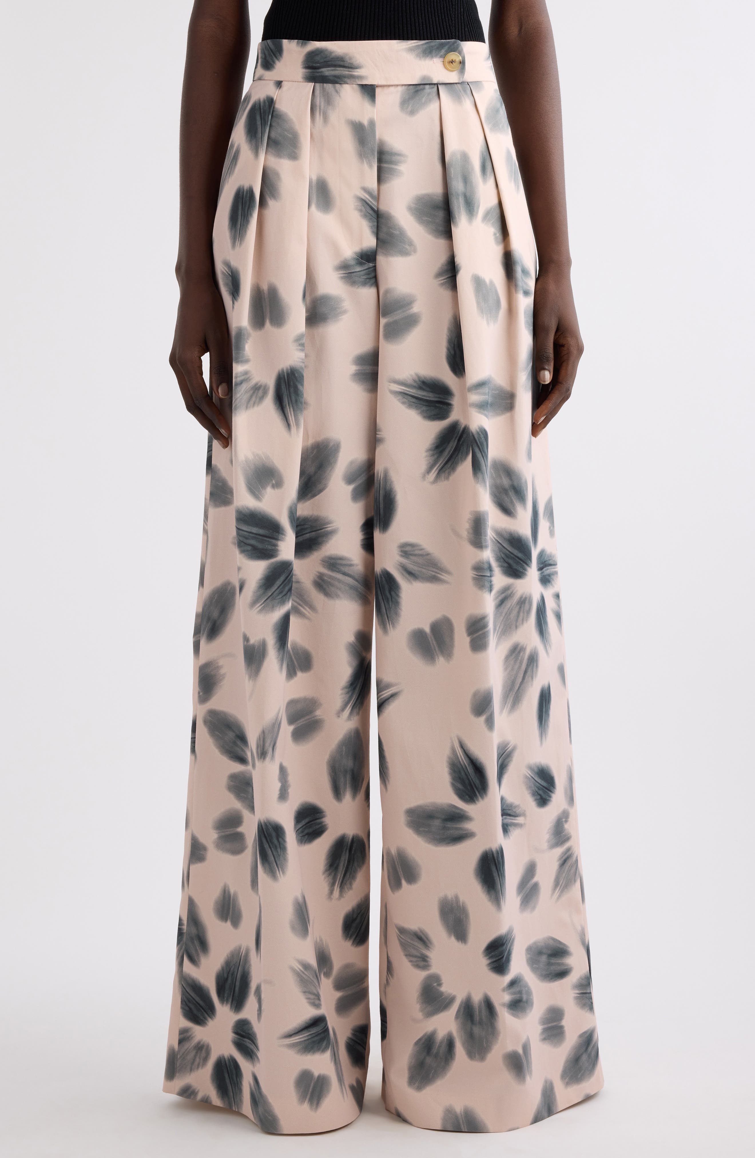 Dries Van Noten Pamplona Floral Pleated Wide Leg Pants in Blush at Nordstrom