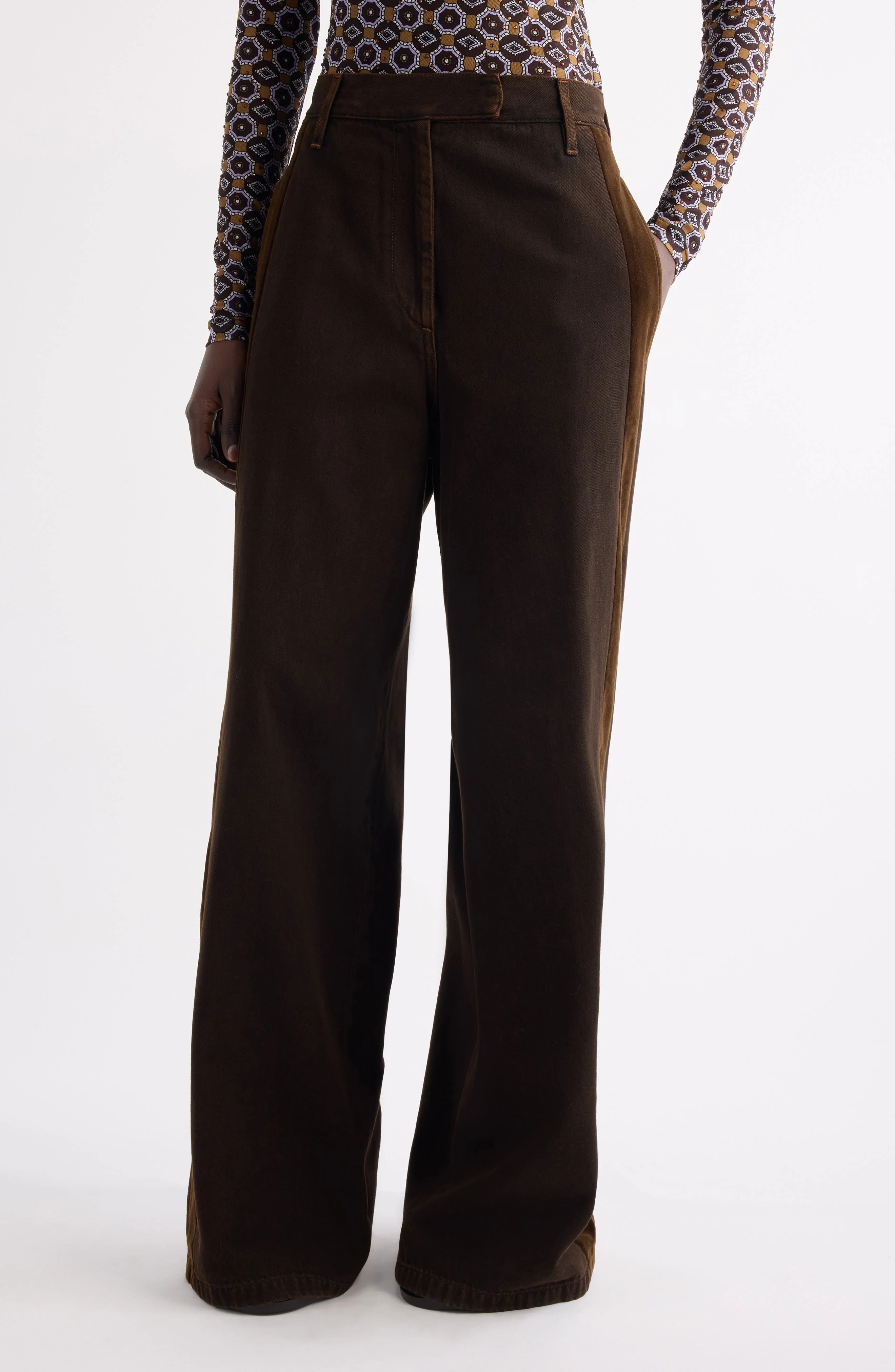 Dries Van Noten Penn Velvet Stripe Wide Leg Denim Trousers in Brown at Nordstrom