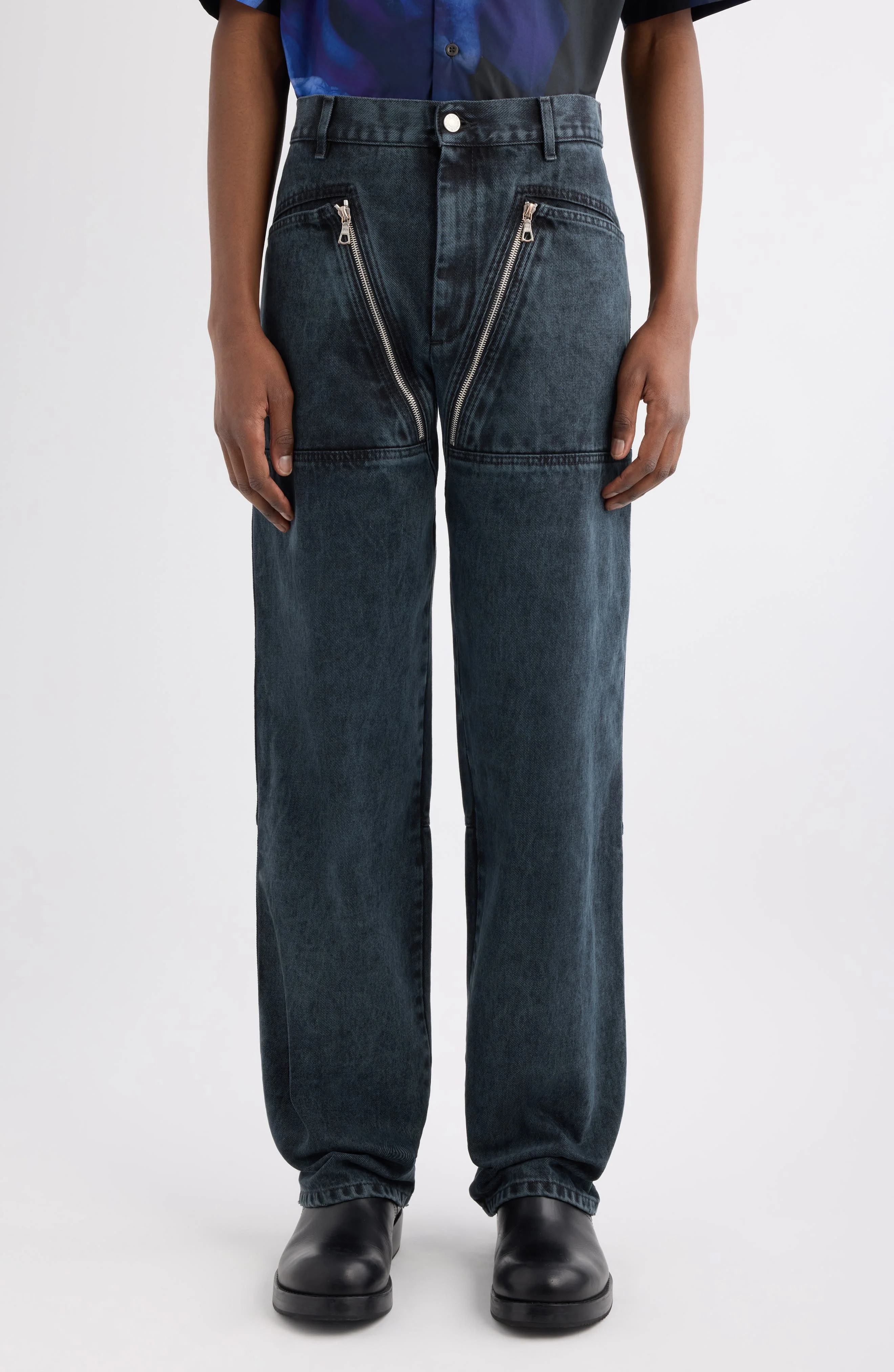 Dries Van Noten Pexior Zip Detail Jeans in Petrol at Nordstrom