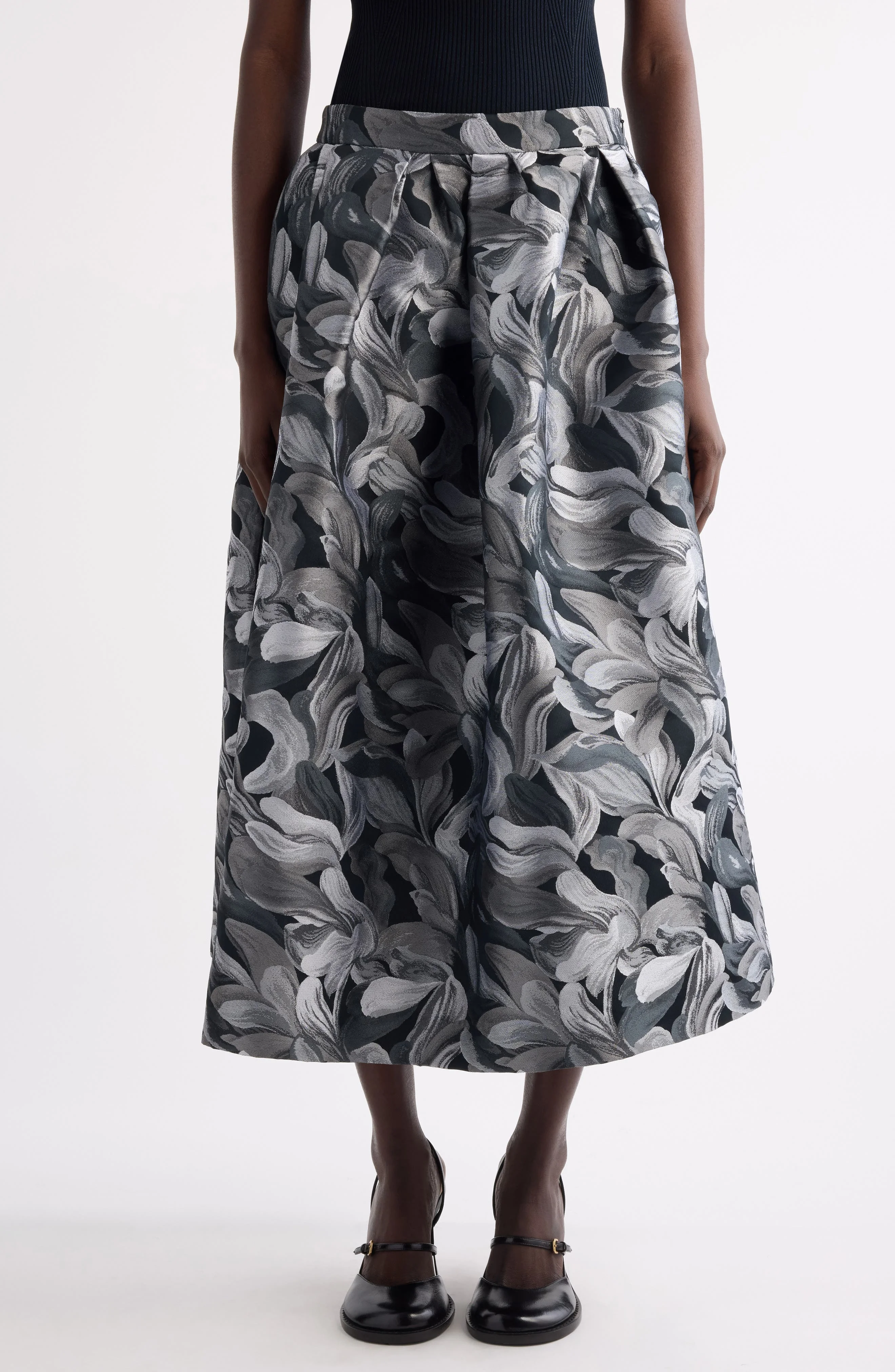 Dries Van Noten Soni Abstract Floral Jacquard Pleated A-Line Midi Skirt in Black at Nordstrom