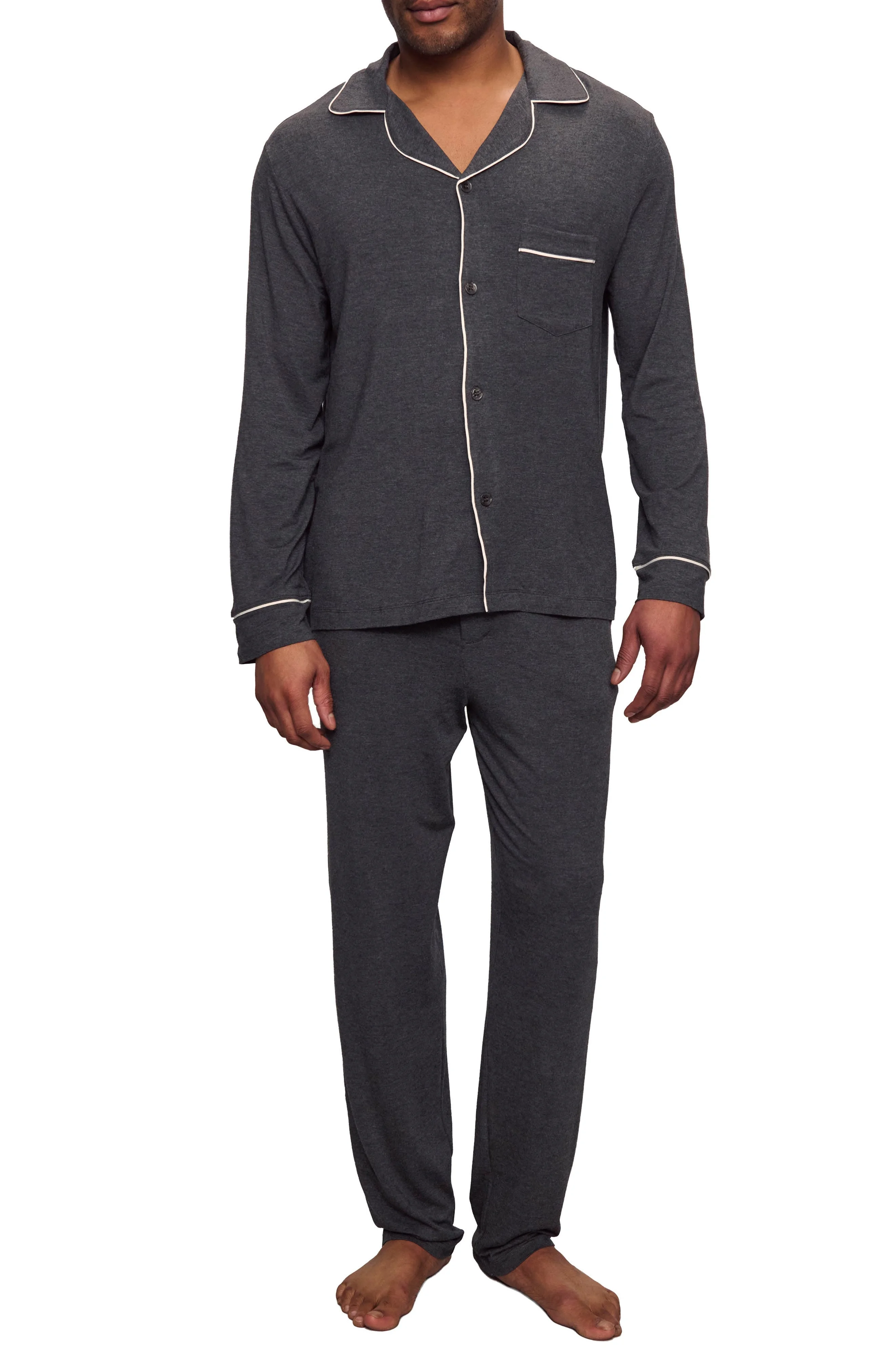 Eberjey William Stretch Tencel® Modal Long Pajamas in Charcoal Heather at Nordstrom