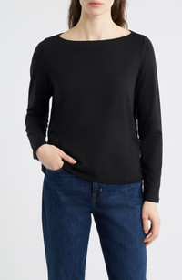 Eileen Fisher Bateau Neck Top in Black at Nordstrom