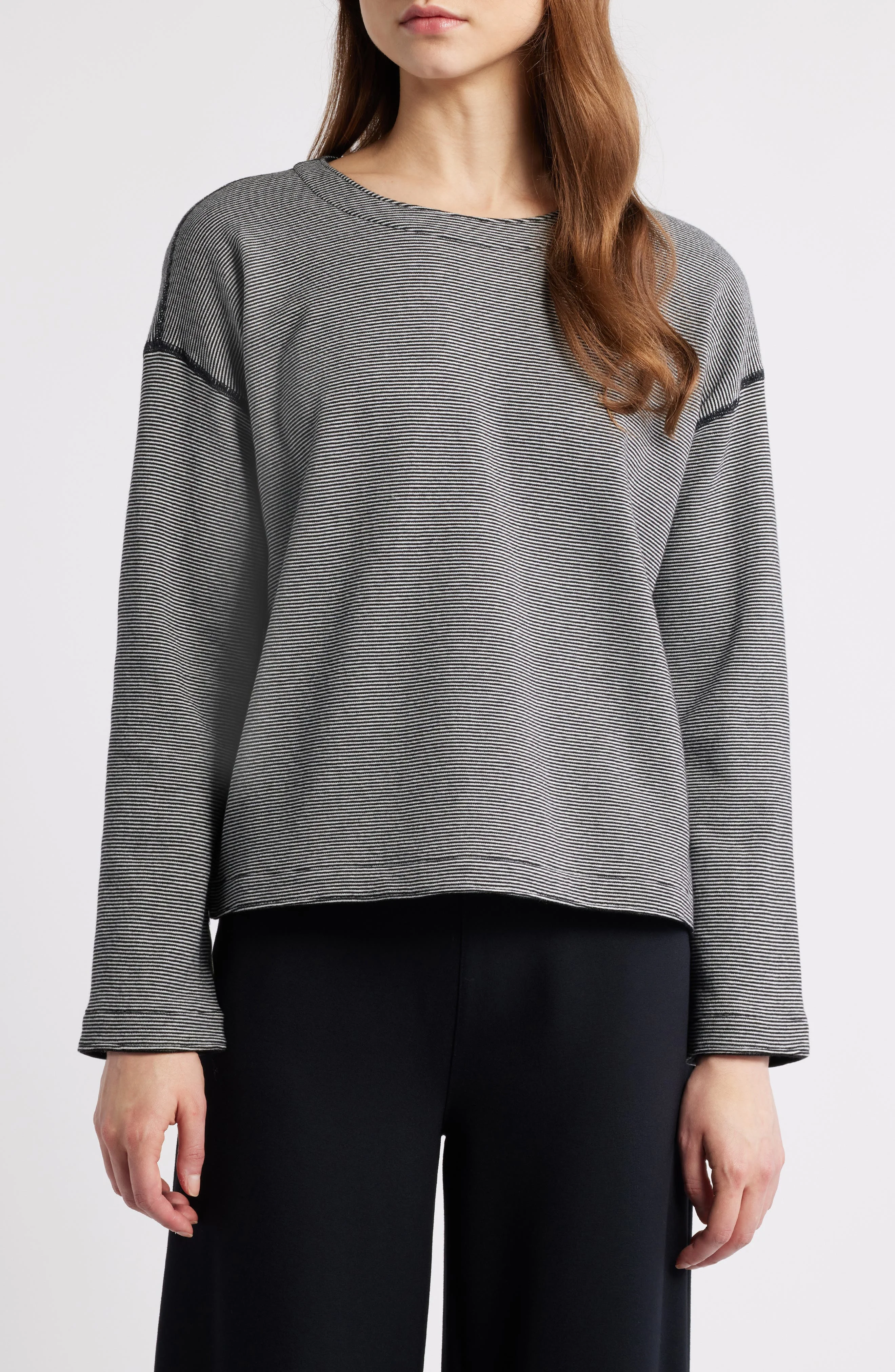 Eileen Fisher Reversible Organic Cotton Top in Black/Ivory at Nordstrom