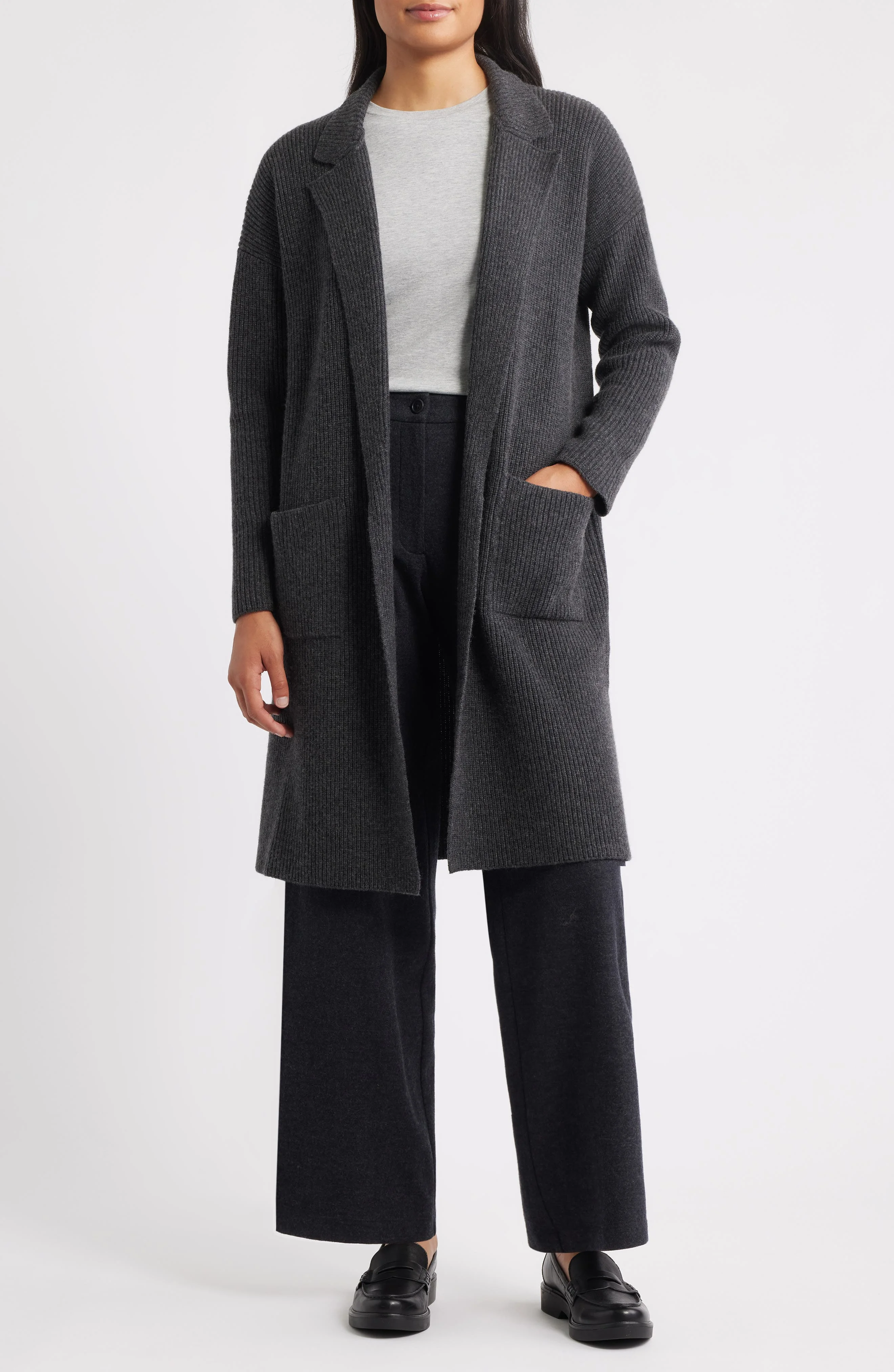 Eileen Fisher Rib Wool Coatigan in Charcoal at Nordstrom