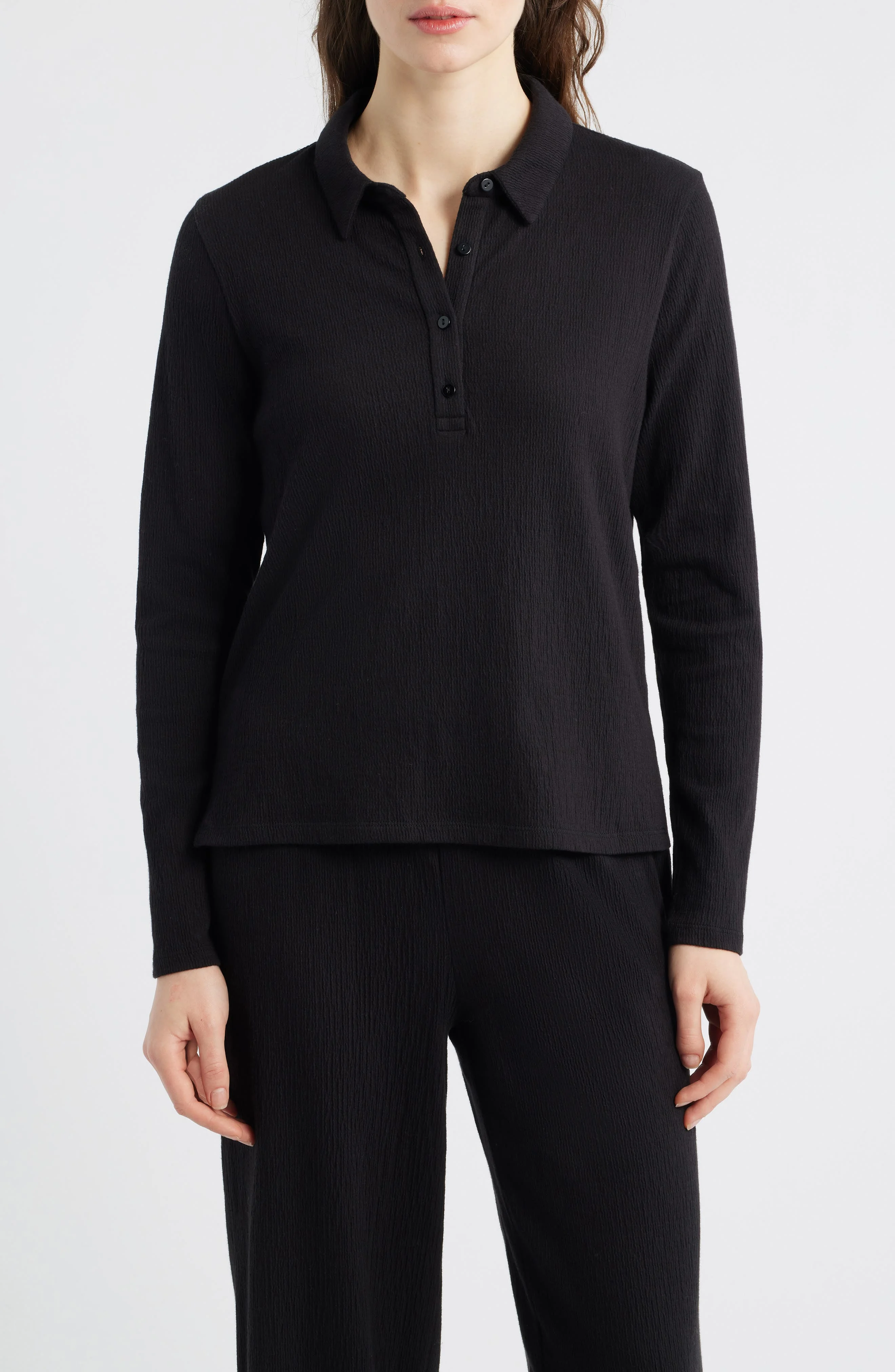Eileen Fisher Slim Textured Henley in Black at Nordstrom