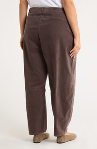 Go from desk to dinner in a flash in these stretchy organic-cotton ankle pants imagined with a barrel-leg silhouette for a modern look. 27" inseam; 18" leg opening; 13" front rise; 19 1/4" back rise Zip fly with button closure; back elastic waist Front slant pockets 97% organic cotton, 3% elastane Machine wash, line dry Imported