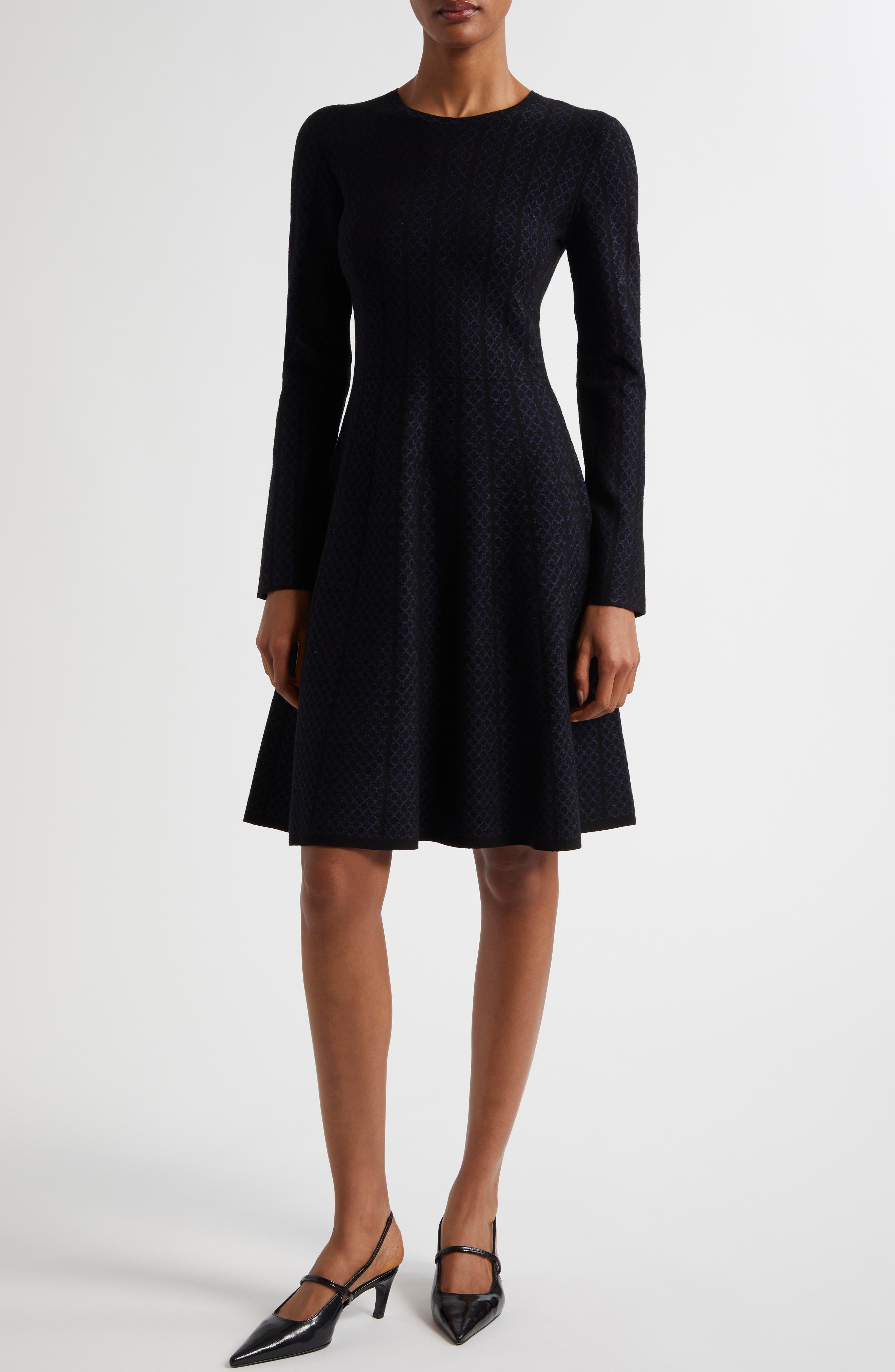 Emporio Armani Geo Jacquard Stripe Long Sleeve Fit & Flare Jersey Dress in Solid Black at Nordstrom
