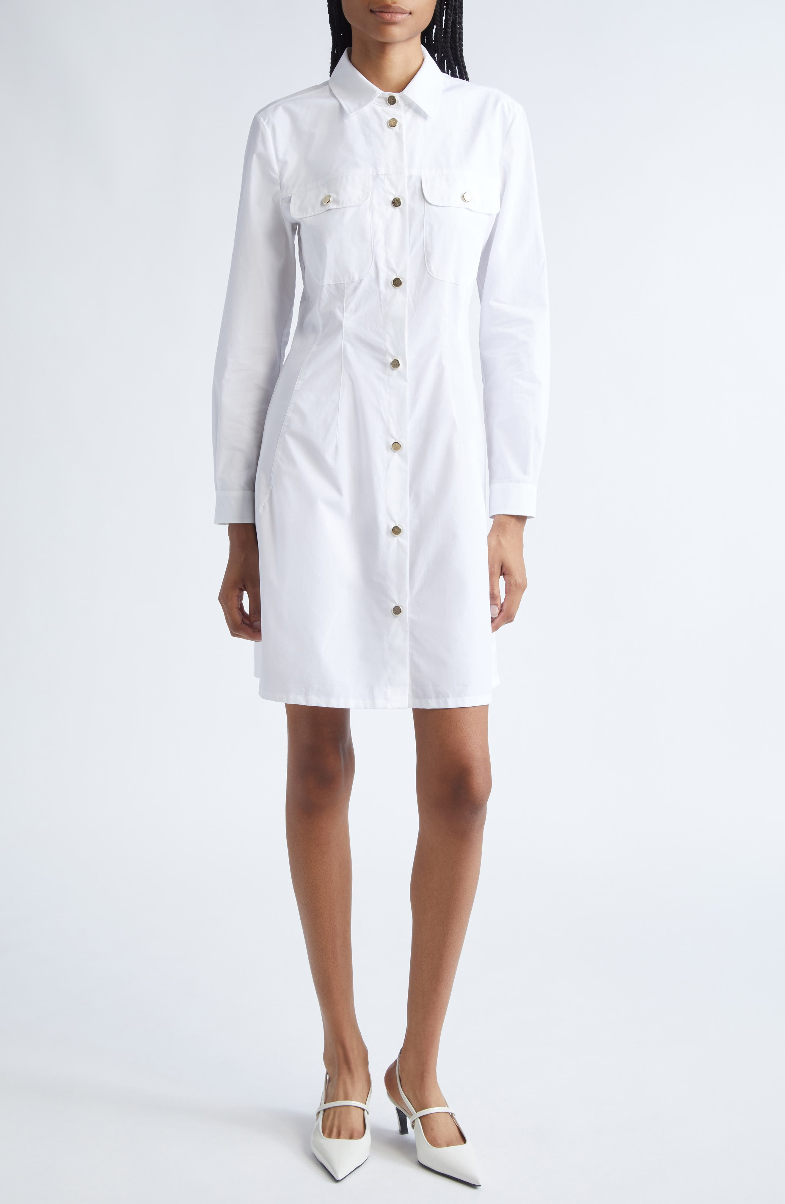 Emporio Armani Long Sleeve Cotton Poplin Button-Up Shirtdress in Solid White at Nordstrom