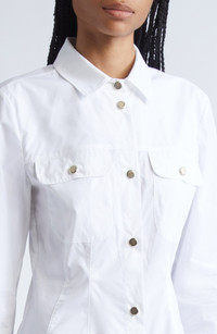A polished take on utility, this cotton-poplin shirtdress stands out with gleaming buttons and convenient chest pockets. Front button closure Point collar Long sleeves Chest button-flap patch pockets 100% cotton Dry clean Imported