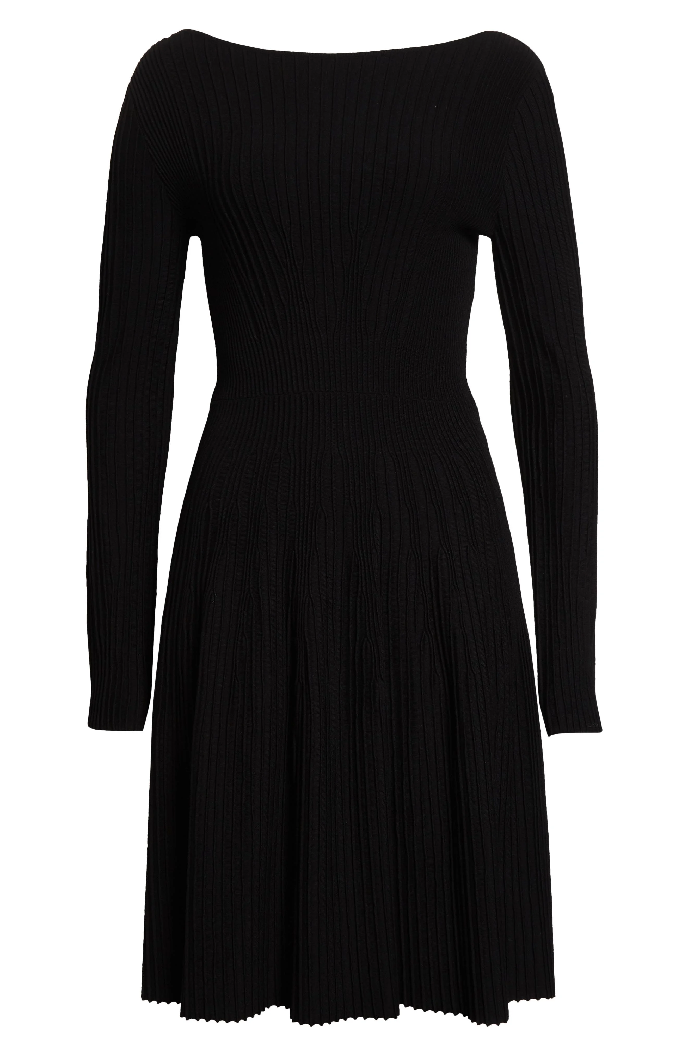 Emporio Armani Ribbed Fit and Flare Sweater Dress in Black Solid at Nordstrom
