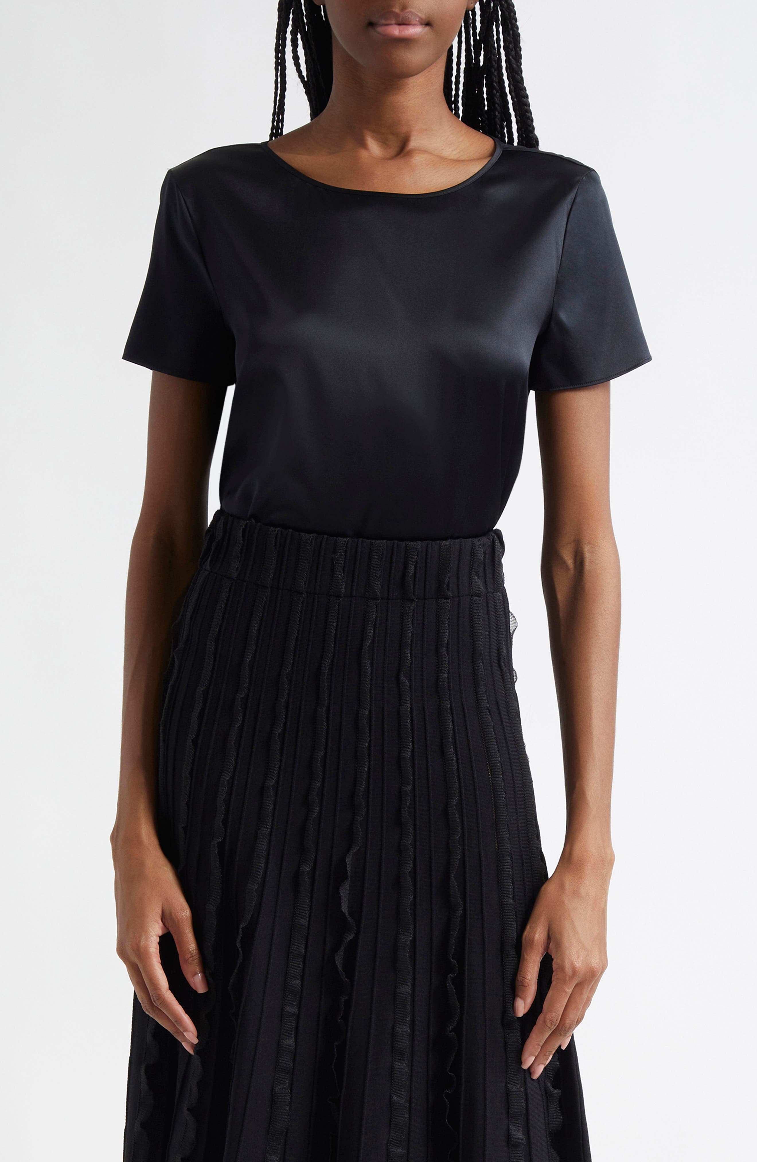 Emporio Armani Satin Stretch Silk T-Shirt in Black at Nordstrom