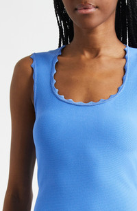 Give your curves a hug in this sleeveless dress made of stretchy Milano and designed with a softly ruffled hem. Slips on over head Scoop neck Sleeveless 88% viscose, 12% polyester Dry clean Imported